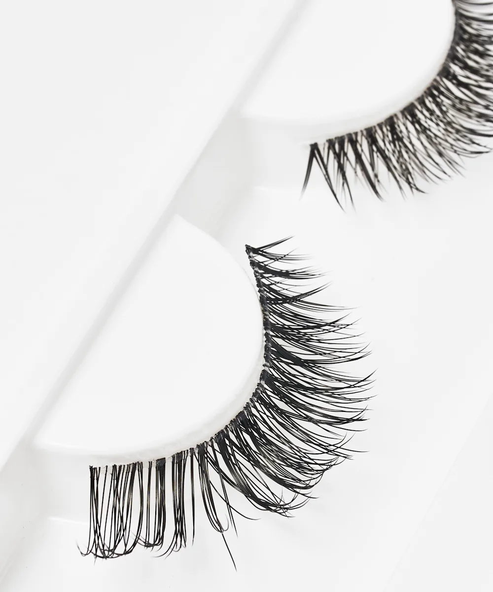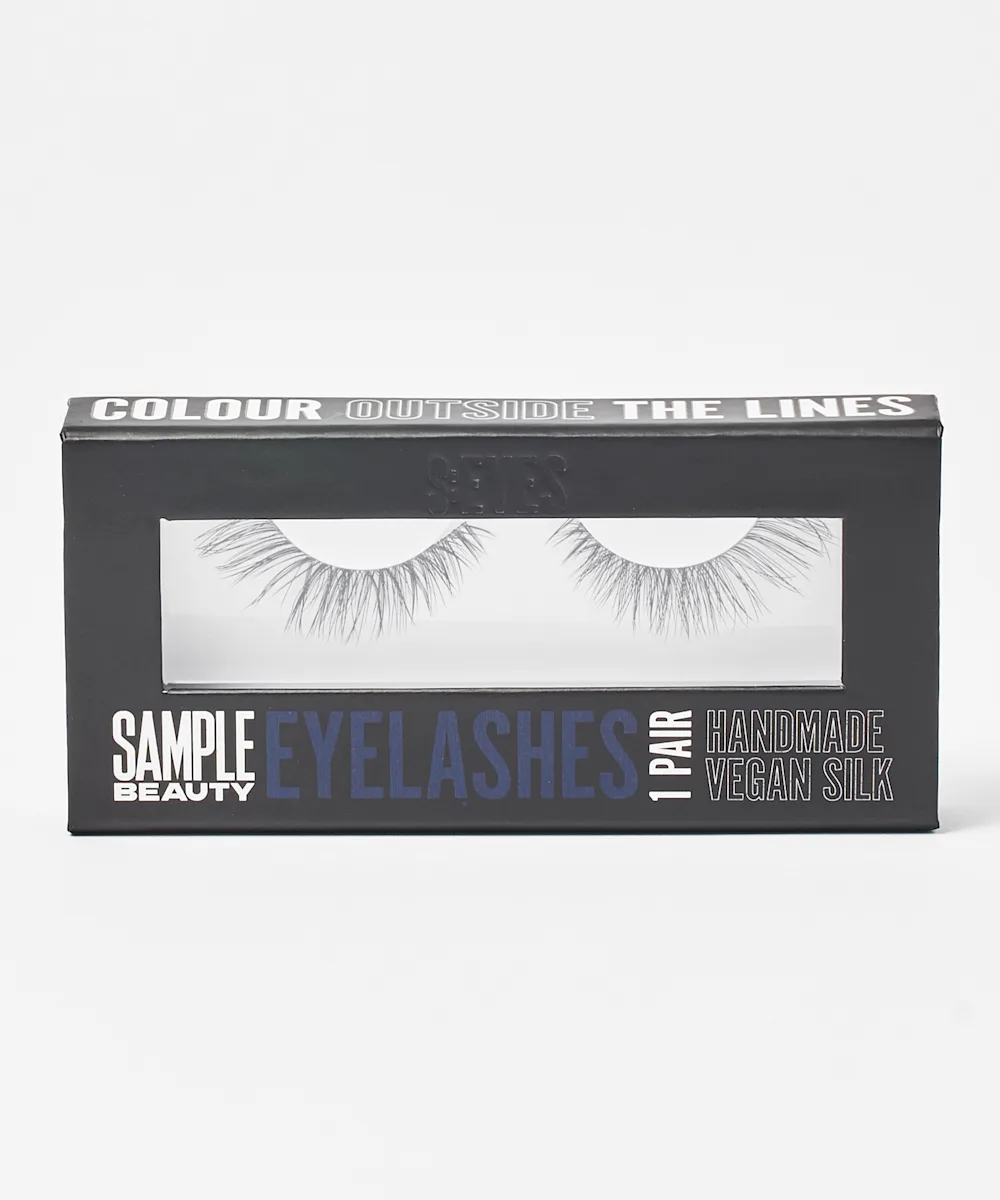 Give everyone lash FOMO with the Sample Beauty Fauxmo Vegan Synthetic Silk False Lashes. This pair of luxury lashes have been created for you to use over and over again to enhance your favourite makeup looks. The high-quality, vegan silk fibres have a flared, volumising effect that adds drama to your natural lashes. The clear band is flexible and comfortable to wear, without interrupting your eye look or appearing as if you’re wearing eye liner. Simply place your lashes back in their reusable case to keep them in their best condition for your next wear.