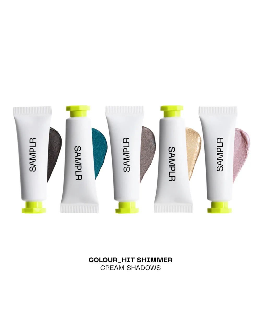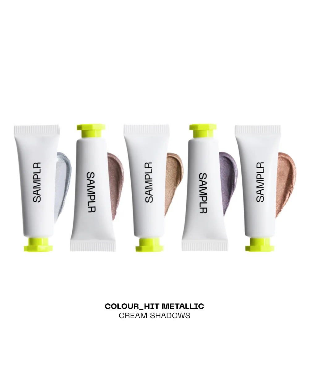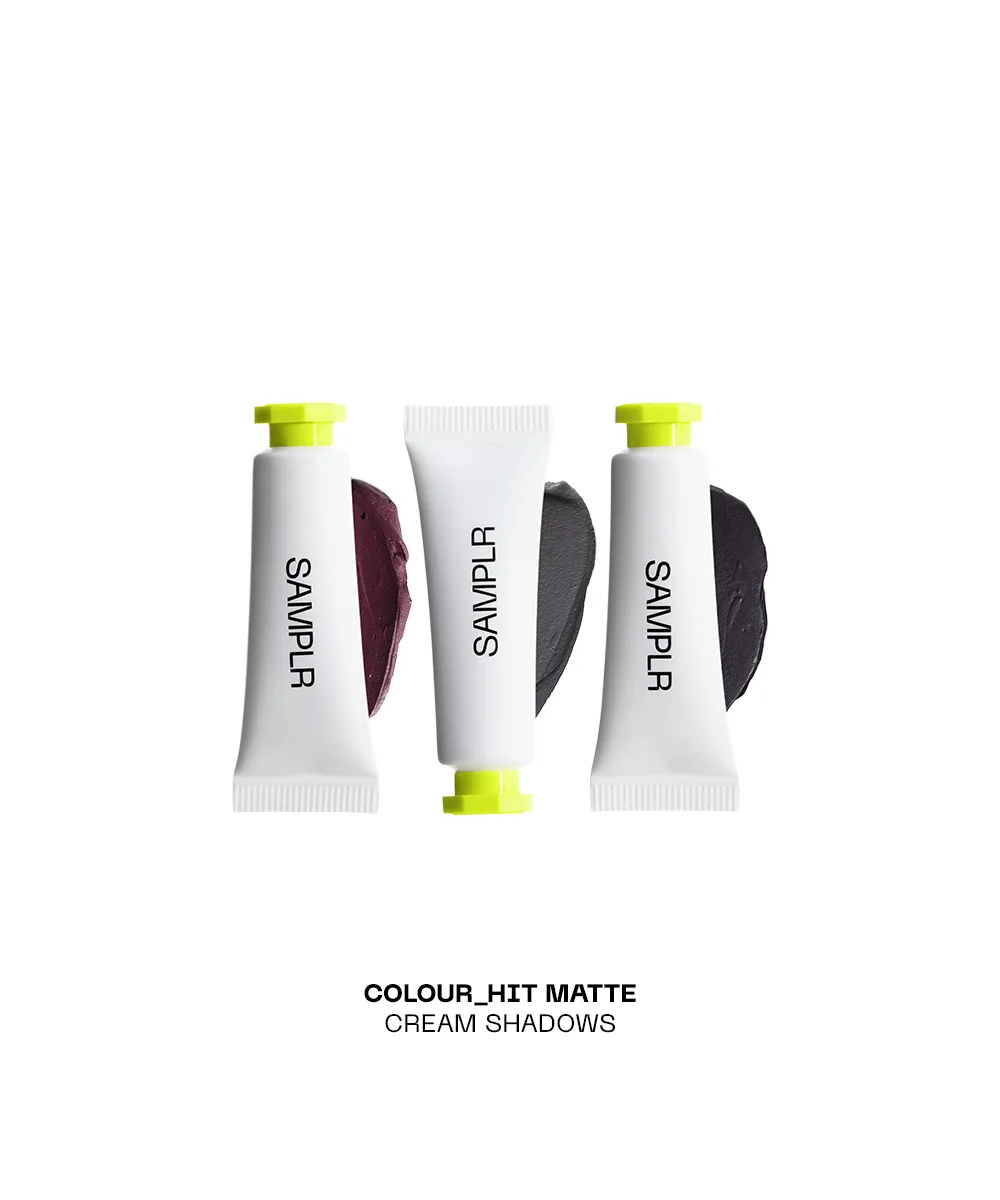 Build, blend, and play with the Samplr COLOUR_HIT Cream Eyeshadow Vault. This lab-developed collection of cream eyeshadows delivers ultra-smooth application, rich, long-lasting colour, and a mix of shimmer, matte, and metallic finishes to take you from soft washes to bold, high-impact looks. Lightweight and effortlessly blendable, each formula glides on, layers seamlessly, and sets to a crease-resistant, transfer-resistant finish for eye looks that move with you.