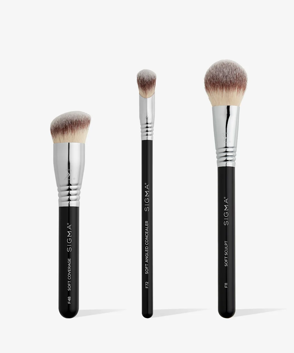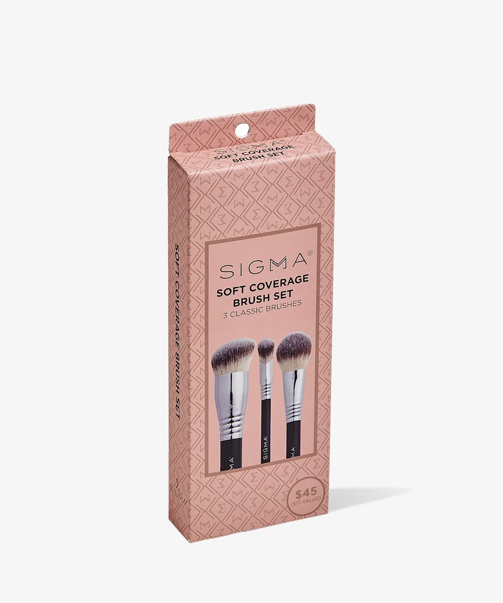 Nail that soft, flawless complexion every day with this must-have Sigma Soft Coverage Brush Set. Each brush is designed with serious attention to detail, making it super easy to blend and apply your makeup for that flawless, glass-skin vibe. Whether you're working with liquid, cream or powder products, these ultra-soft brushes make application a breeze, giving you a smooth, streak-free finish and buildable coverage.