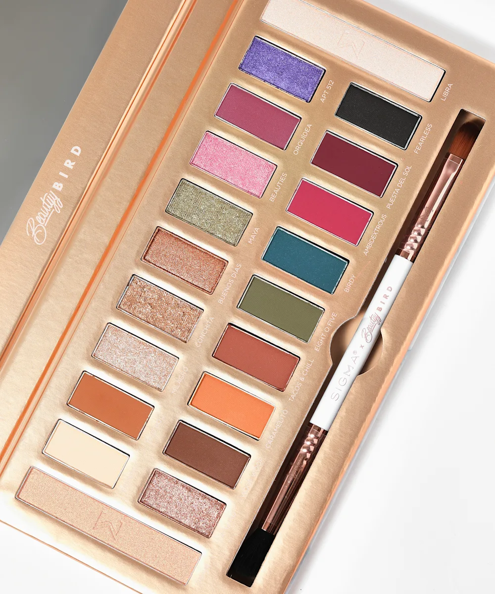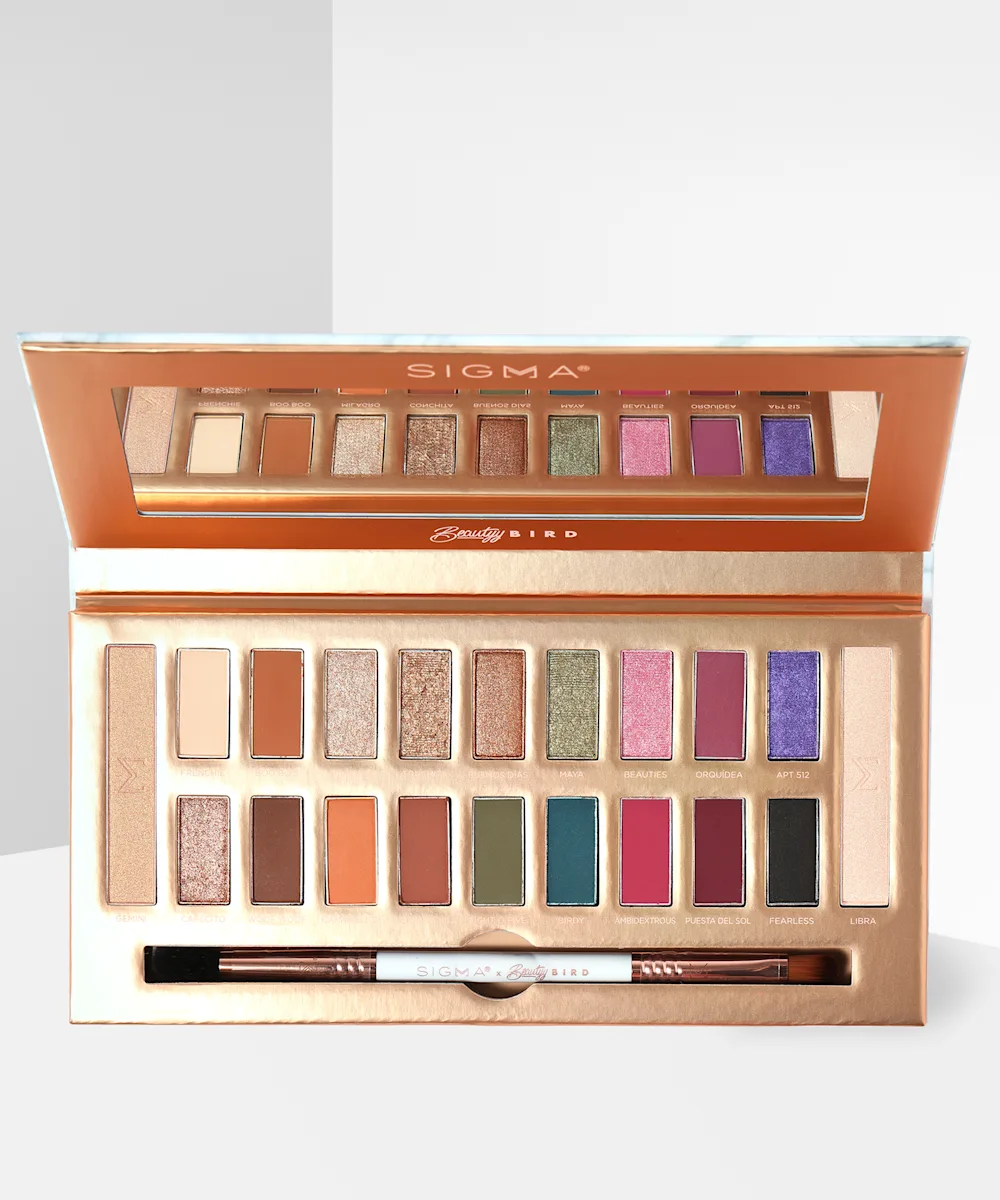Created from beginning to end with beauty influencer, Yasmin Maya, aka BeautyyBird, Sigma’s The Dream Eye & Cheek Palette features 18 gorgeous eyeshadow shades plus two highlighter shades. The perfect go-to palette for creating looks for every occasion, the palette has everything you need for neutral looks and bold vibes. The travel-friendly palette includes a dual-ended brush featuring the E38Diffused Crease™ for perfect blending and the E58 Cream Colour for precise pigment placement.
