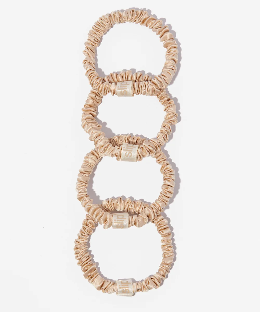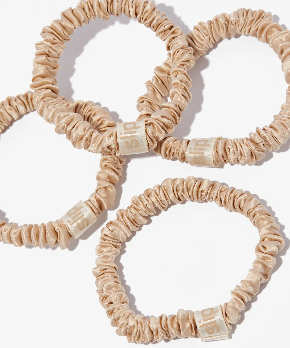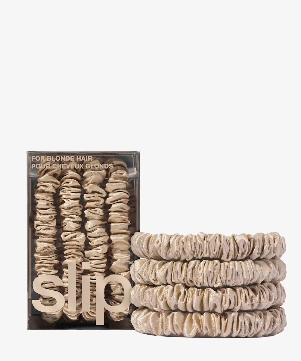 Oh, you’re in for a treat. You’ve just found your next haircare obsession. The Slip Pure Silk Skinny Scrunchies have been designed to avoid hair creases and be gentle on delicate hair. Made using the highest-grade long fibre mulberry silk, the Slipsilk™ fabric has been specially commissioned and refined for over ten years to create the ultimate combination of shine, thickness, softness, and durability.