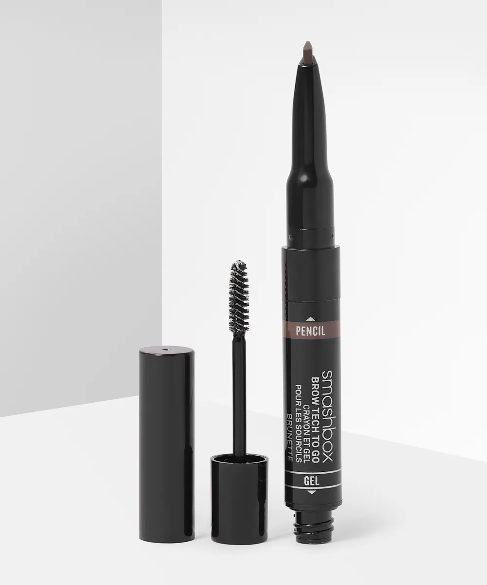 For perfect brows wherever you are, reach for the Smashbox Brow Tech To Go. This waterproof brow pencil and soft-hold gel duo makes quick work of perfecting your brows. The petite, travel-friendly size features an angled waterproof brow pencil at one end for filling and defining, and a soft hold gel at the other to set your brows in place.