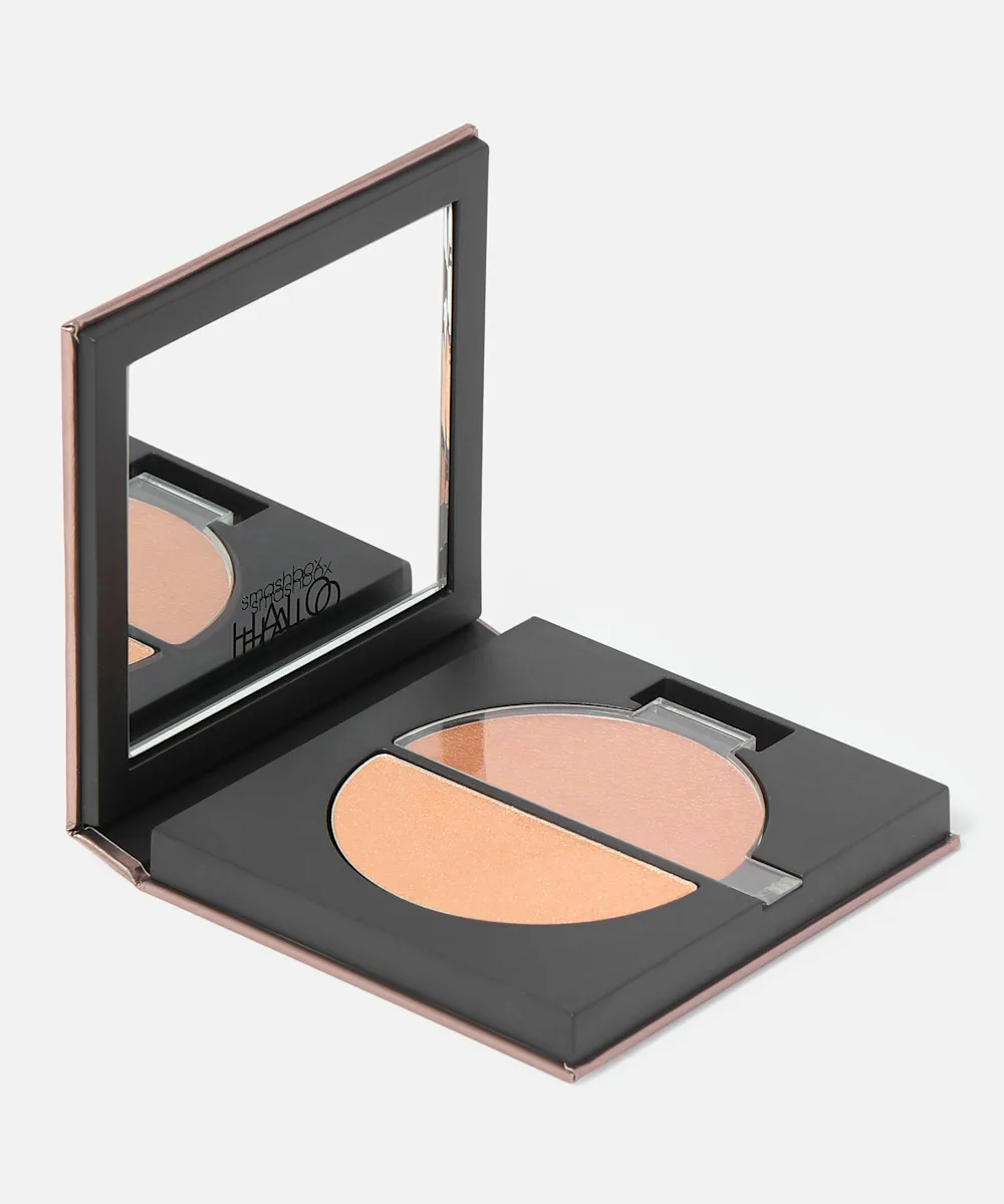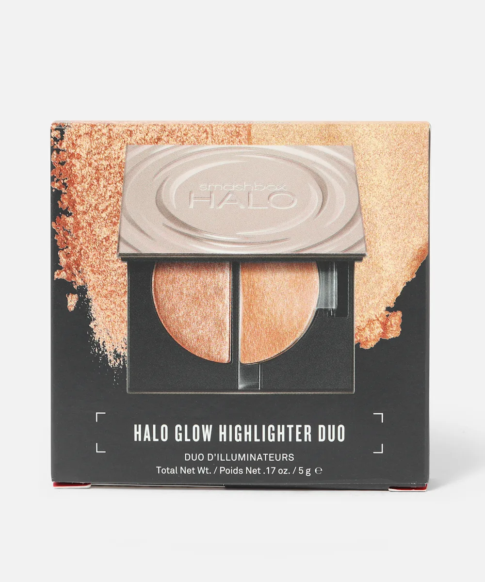 Take your glow to the next level with the Smashbox Halo Glow Highlighter Duo. This split-pan highlighter is the answer to all your glow goals. Featuring two textures in two complementing tones, this highlighter duo allows you to create your own custom glow. The creamy, radiant, putty texture creates a subtle, dewy glow, whilst the pearl powder gives an intense shimmer. Wear alone or combine for a custom finish.