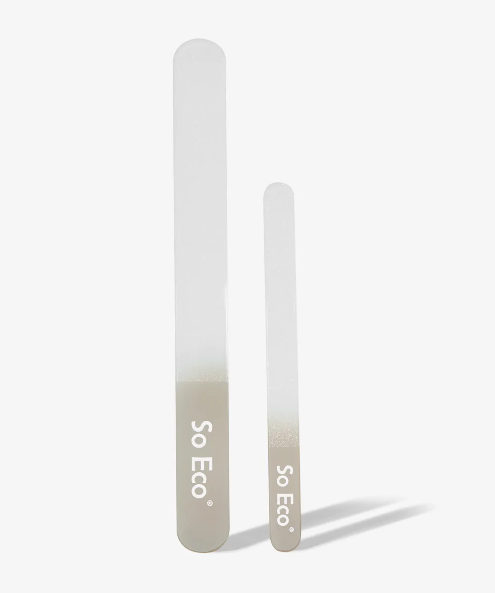 Nail your next at-home mani with the So Eco Glass Nail File Duo. This nail file duo set is designed with an abrasive surface, perfect for filing natural and false nails without causing chipping or peeling. For best results, dampen before using and use on dry nails.