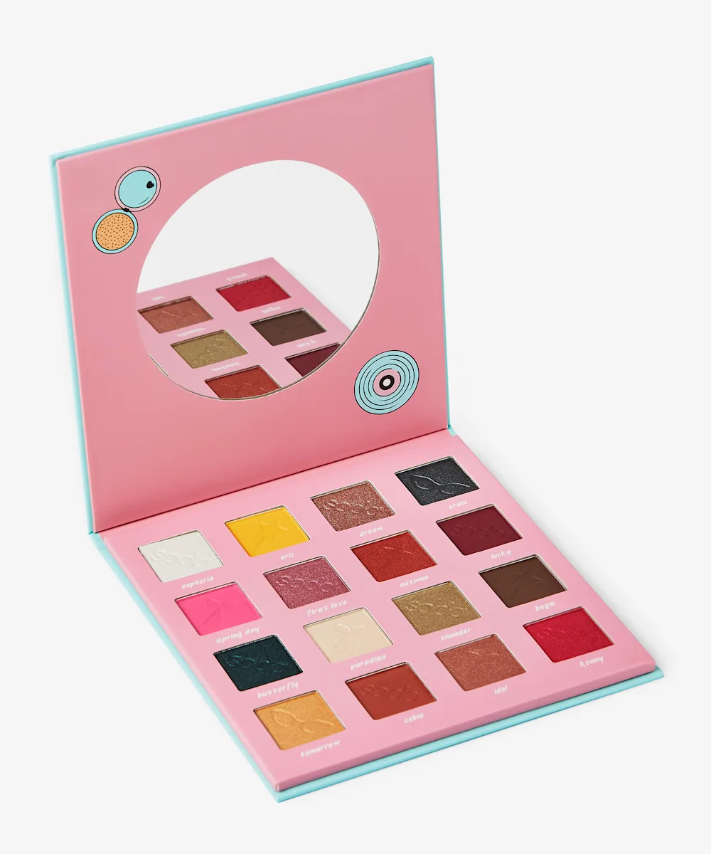 A sixteen-colour eyeshadow palette.