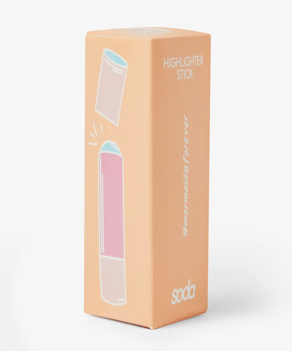 Get that dewy glow with the Soda #mermaidsforever. This balmy highlighter stick gives a soft, liquid, shimmering glow to the skin. The ultra-soft, super reflective formula melts onto the skin for a glow like no other.