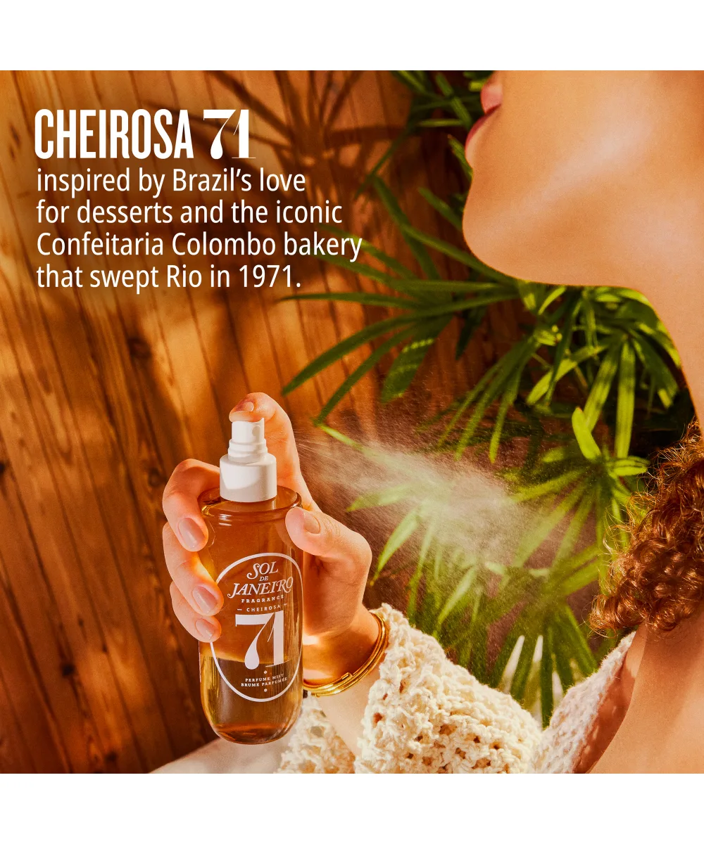 Warm and cozy, the Sol De Janeiro Brazilian Crush Cheirosa 71 Mist is about to become your new favourite scent. Inspired by Brazilian muse, Leila Diniz, this mist features an amber gourmand fragrance with rich notes of caramelized vanilla, toasted macadamia, and tonka bean.