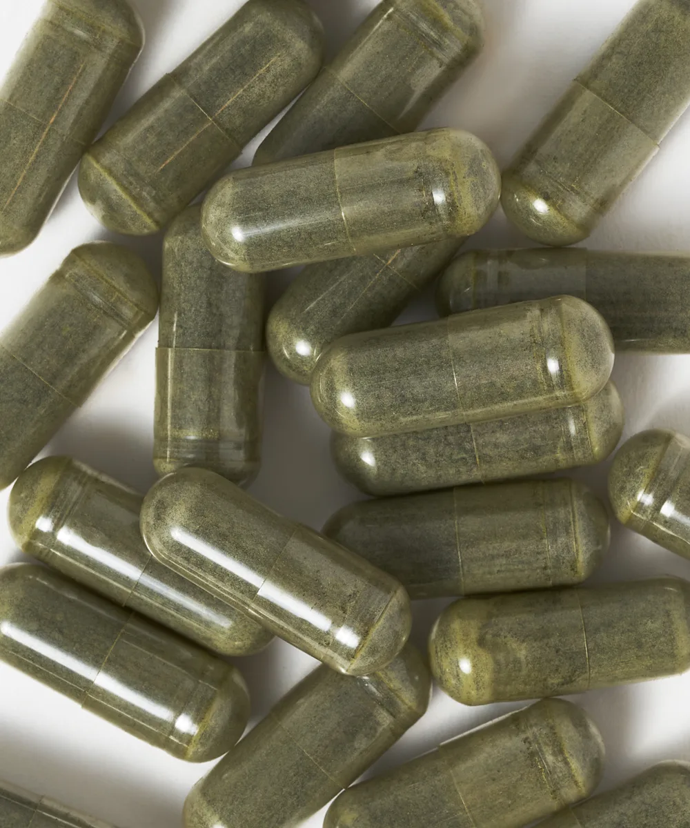 Chlorella Powder (broken cell-wall) (from dried and milled green micro-algae, providing chlorophyll), Vegetable Capsule Shell (hydroxypropylmethyl cellulose), Bulking Agent: microcrystalline cellulose, Anti-caking Agent: vegetable magnesium stearate