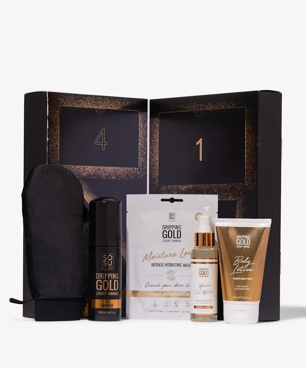 Get your tan on with SOSU by Suzanne Jackson’s Advent Calendar. This advent calendar contains everything you need to achieve a sunkissed tan that has a luminous glow. This includes the Moisture Lock Sheet Mask that helps create the perfect canvas for a flawless tan by enriching the complexion with a nourishing blend of hyaluronic acid, lavender, licorice root, and aloe vera. The Luxury Mousse’s velvety and vitamins A and E-infused formula smoothly glides onto the skin to deliver a rich, deep golden tan, the Wonder Water, a self-tanning mist, hydrates and amplifies your glow with a vitamin E-rich formula, while the Highlighting Lotion delivers a touch of radiance to the skin with a shimmery finish. And finally the Velvet Tanning Mitt offers a seamless, even, and streak-free application that mimics a professional finish. Haul for a radiant, bronzed glow throughout the festive season!