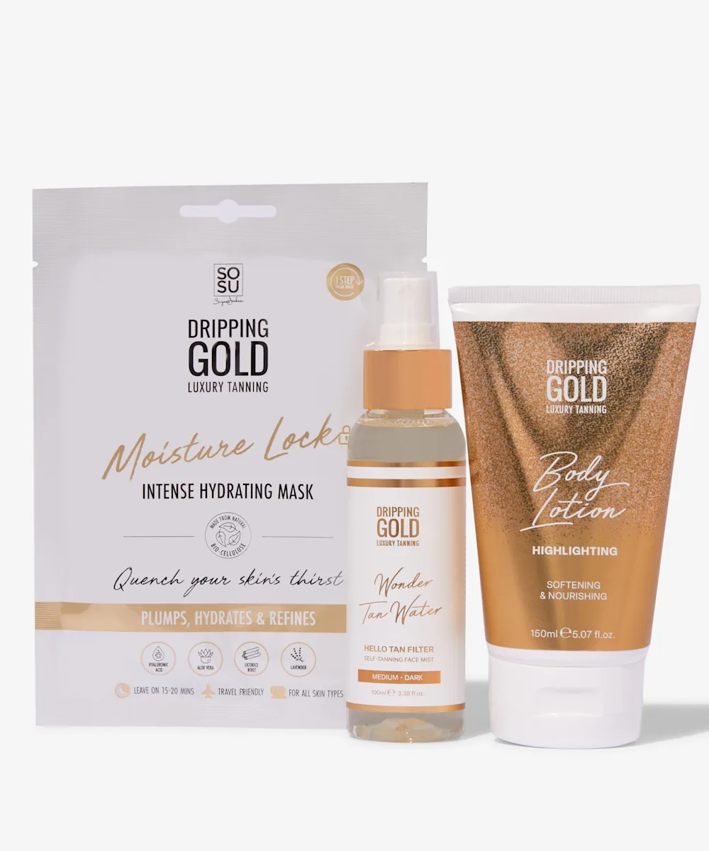 A five-piece set of tanning essentials.