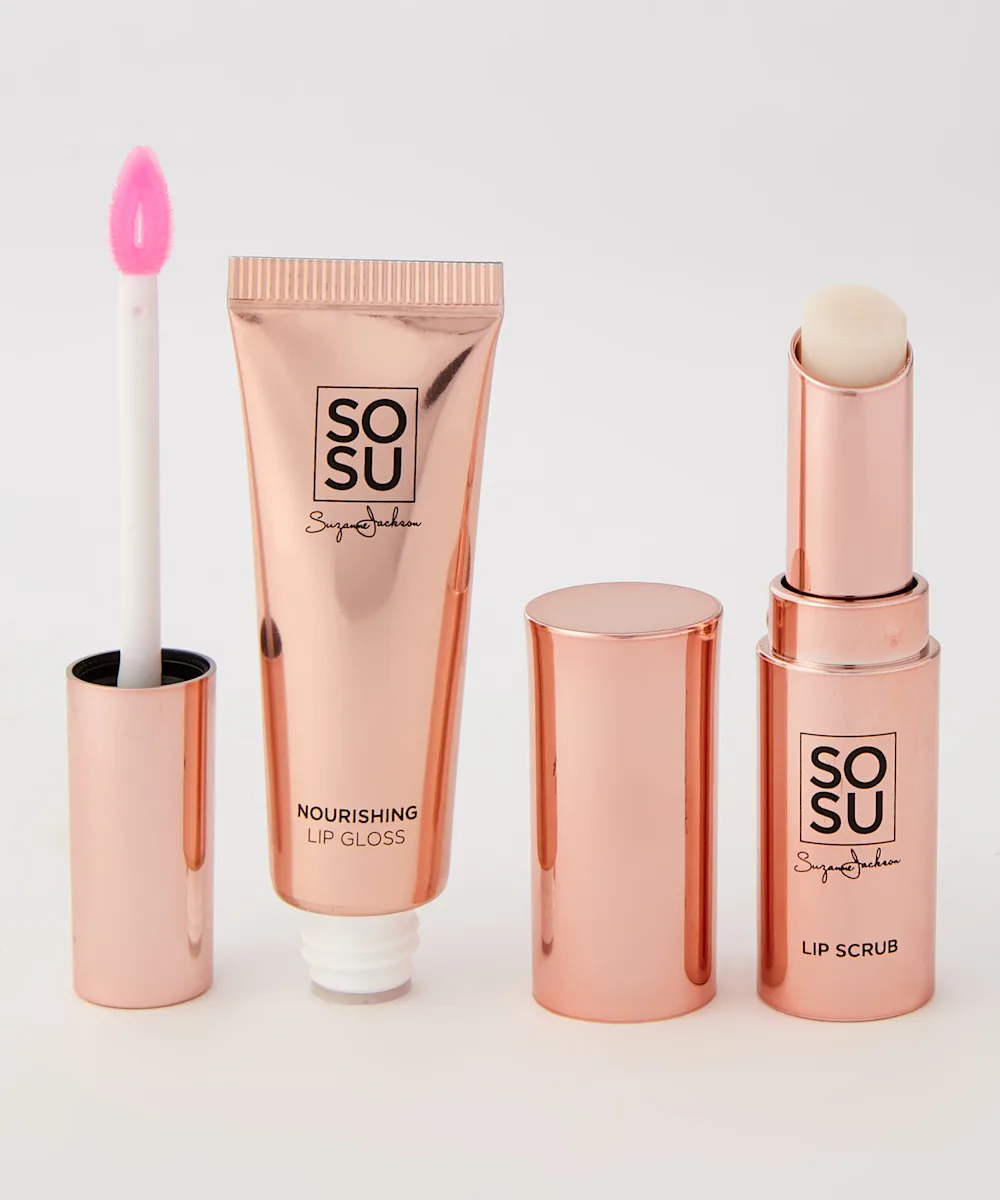 Heavenly hydrated lips, right this way. The Lip Scrub & Gloss Set features two ultra-hydrating, smoothing lip products to leave lips feeling as good as they look. The Let Them Talk Lip Scrub is made with gentle sugar particles to buff away dead skin cells, while an infusion of rose hip oil and vitamin E tackle dryness. The Let Them Talk Nourishing Lip Gloss is packed with soothing vitamin E and Q10 to condition and hydrate the lips while giving them a high-shine, subtle pink. Obsessed!