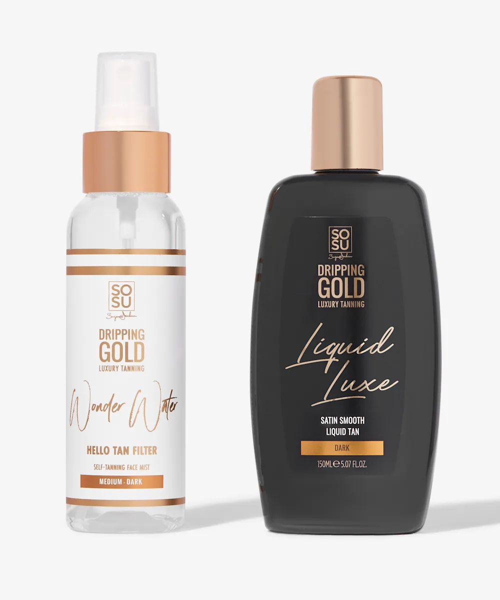 It’s time to tan with the SOSU Cosmetics Liquid Luxe Tan & Facial Mist Duo. This tanning duo features a dark self-tanner and facial tanning mist that lets you create a streak-free, even, golden glow from head to toe, without the risk of clogging pores. What’s more, each formula also helps to lock in moisture, to keep your skin feeling nourished and smooth all day long. Let’s get glowing…