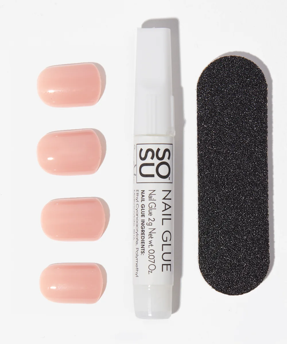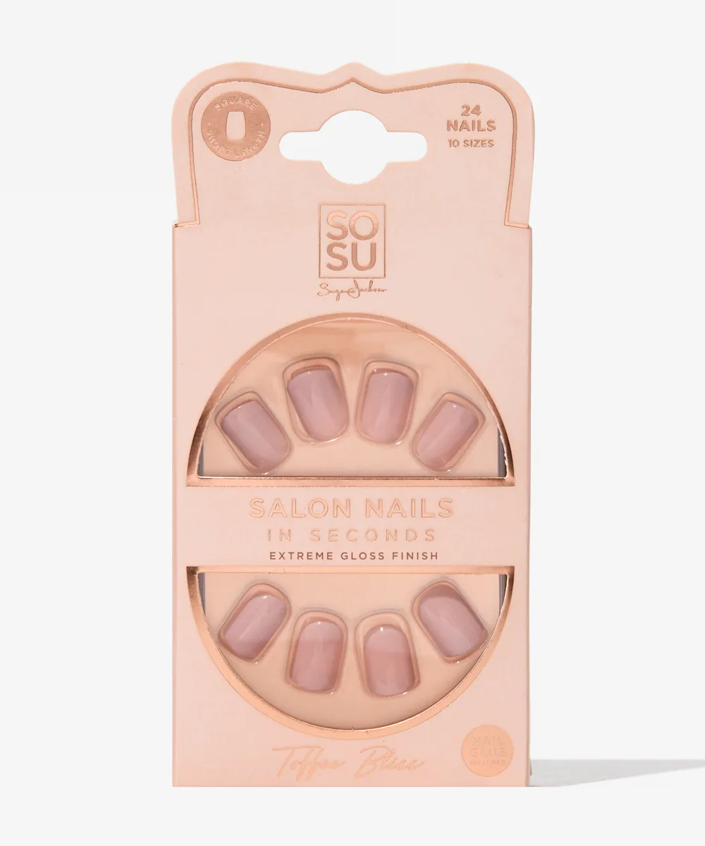 Get a salon manicure in minutes with the SOSU Cosmetics Toffee Bliss Nail. With an extreme glossy finish, these medium length, square shaped, nude false nails are the perfect finishing touch to all your looks.