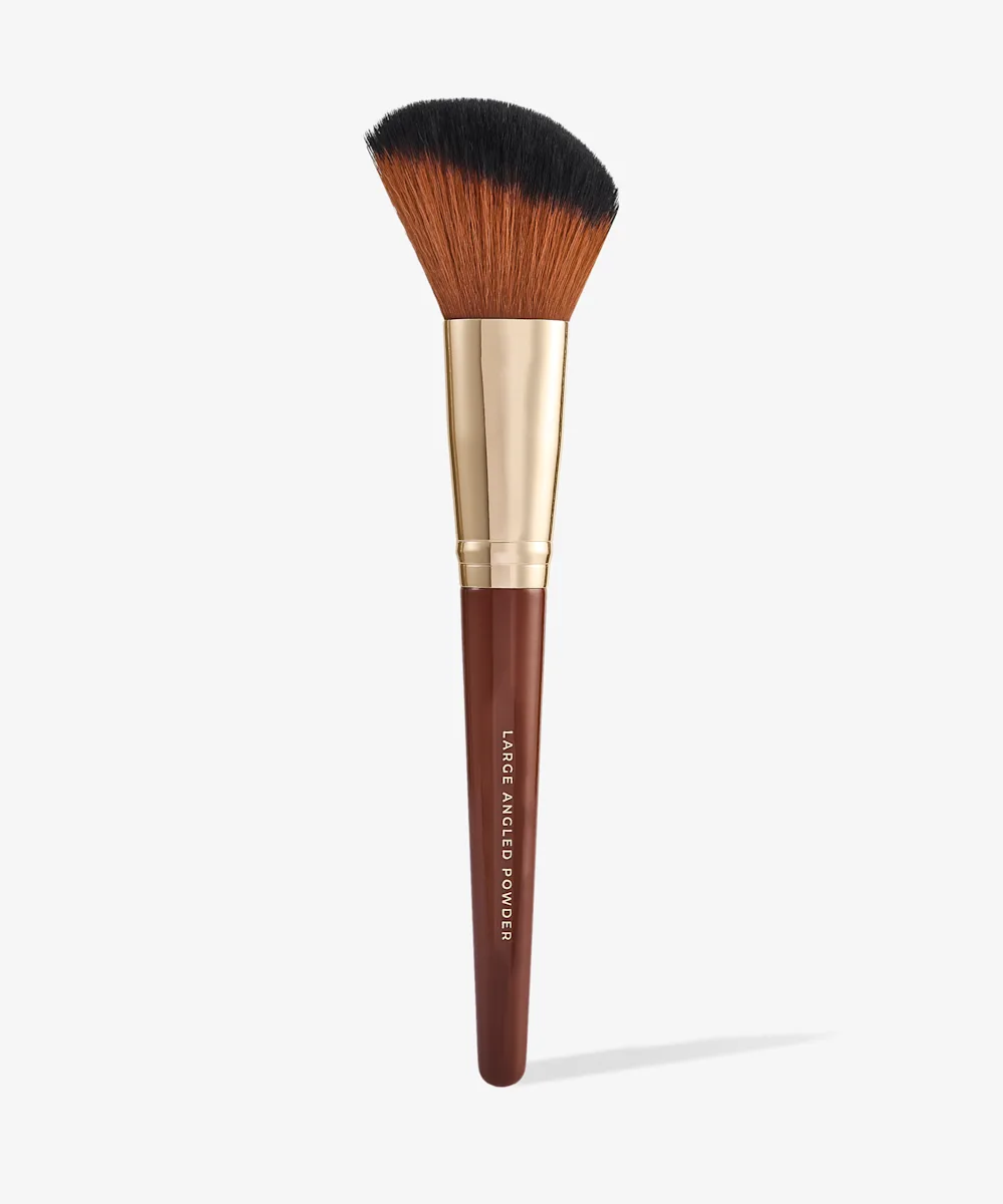 - Blend and set your face with the powder brush, using light sweeping motions to control shine and achieve a smooth finish.
