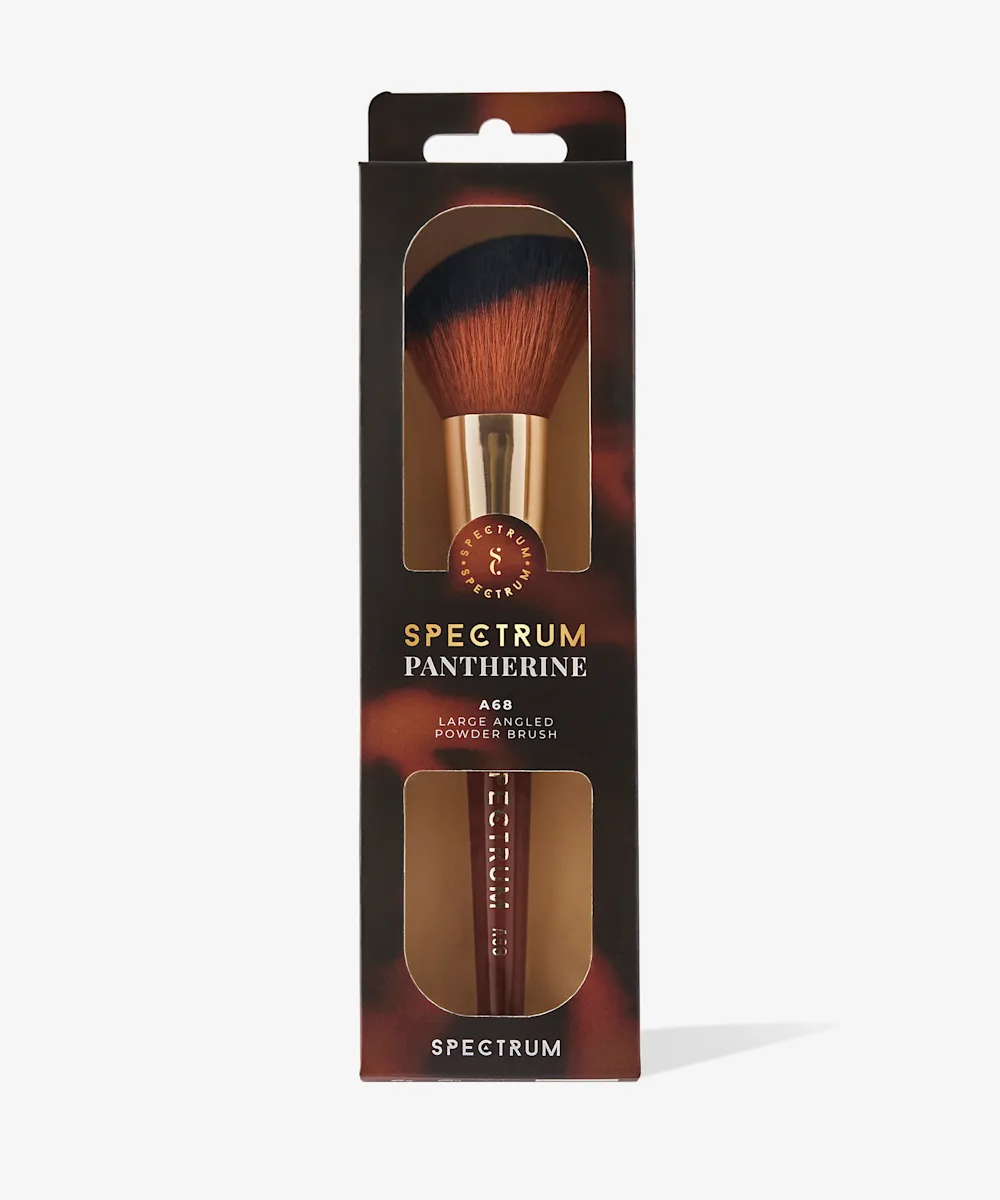 Set, sculpt, and define with the Spectrum Collections Pantherine Pro A68 Large Angled Powder Brush. Designed with silky, ultra-soft bristles, this versatile brush picks up the perfect amount of loose or pressed powder and distributes it evenly without disrupting your base. The angled head effortlessly follows the natural curves of the face, making it ideal for sweeping powder across the T-zone, setting under the eyes, or blending bronzer and contour along the cheekbones, jawline, and hairline. Expect seamless blending, soft definition, and a polished, professional finish every time.