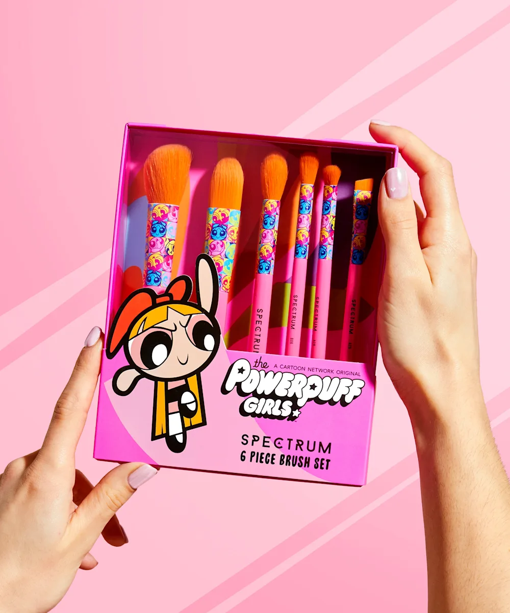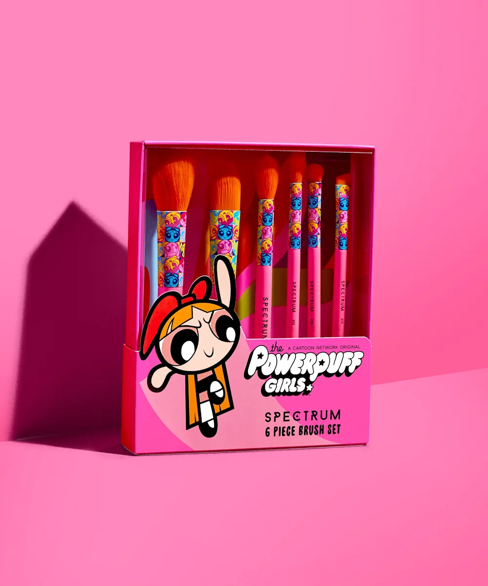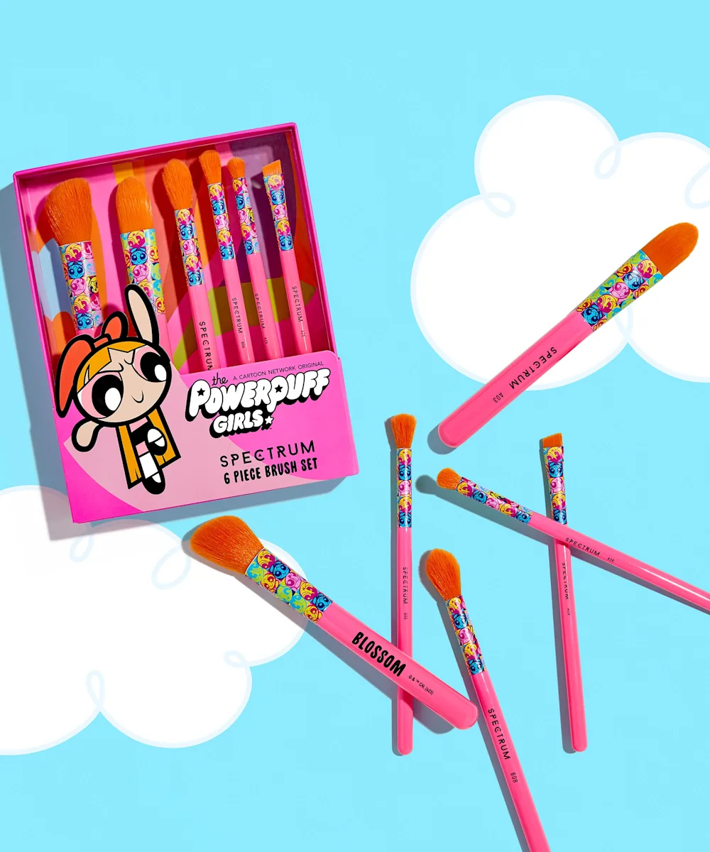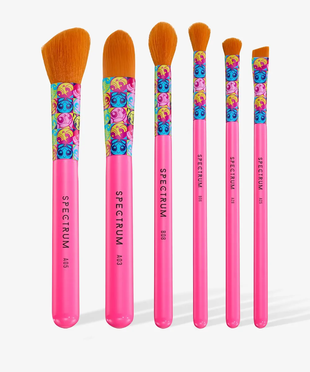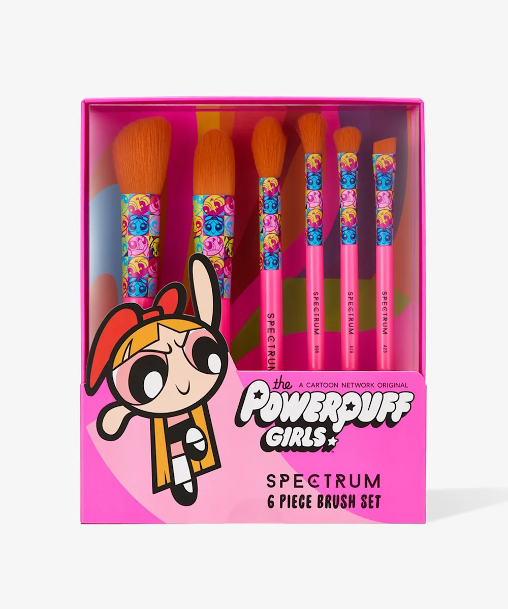 Unleash your inner superhero with the Powerpuff Girls Blossom 6 Piece Brush Set. Including six vibrant and bold brushes that can be used on the face, eyes, lips, and brows, this set has all you need for full face flawlessness. Channel your inner PowerPuff energy and get ready to nail the day (and all your makeup looks).