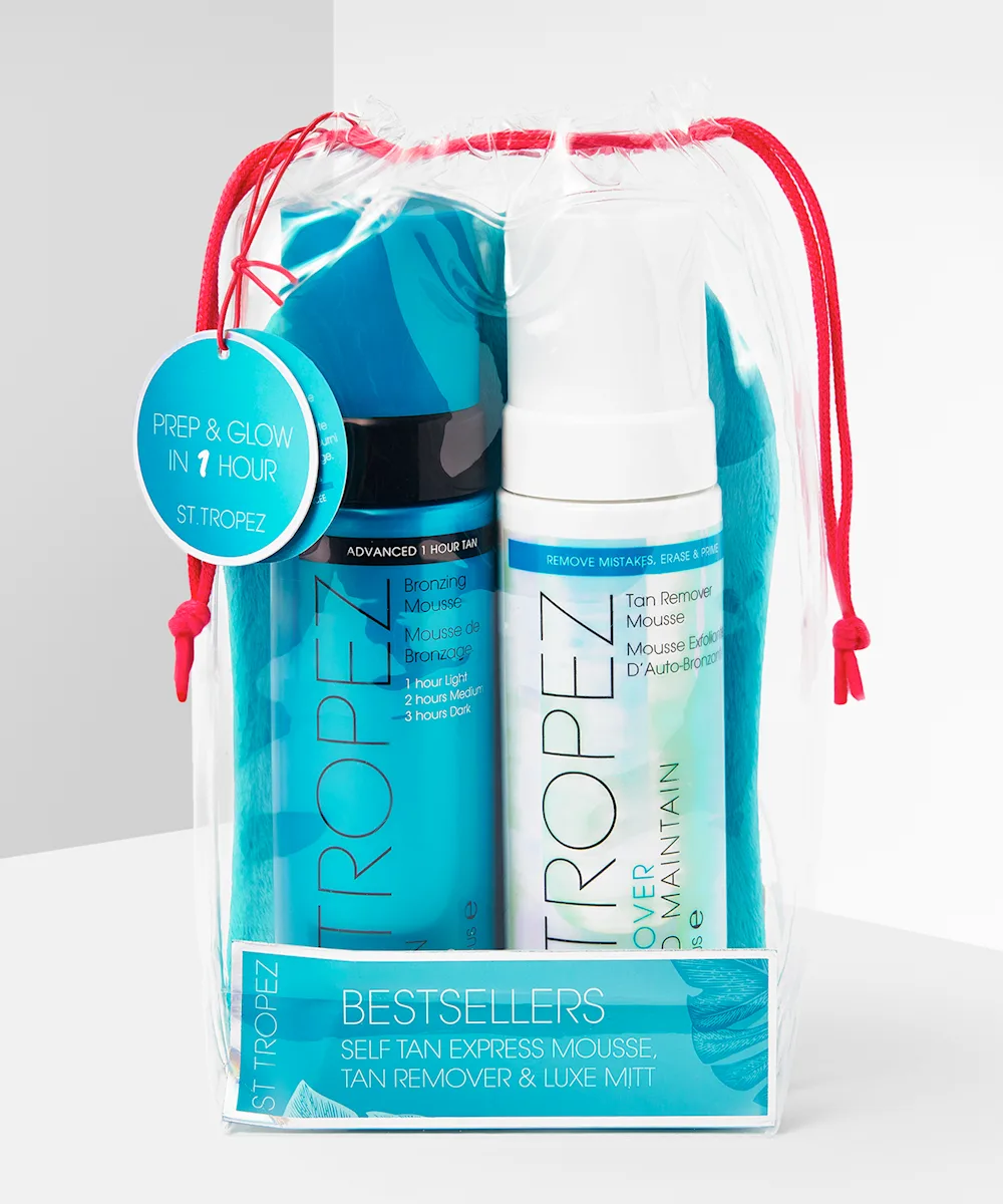They’re bestsellers for a reason! Featuring three of St. Tropez’s essential tanning products, the Bestsellers Kit guarantees a flawless head-to-toe glow with just one application. Featuring the fool proof Express Bronzing Mousse for a fuss-free tan; the life-saving Tan Remover Mousse to ensure your tan never goes patchy; and the iconic Luxe Applicator Mitt deliver a streak-free, even glow.