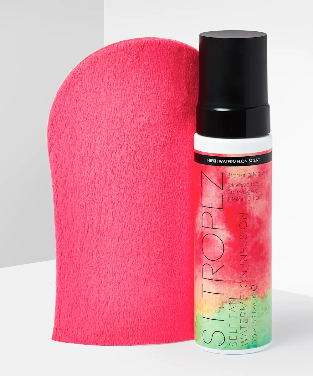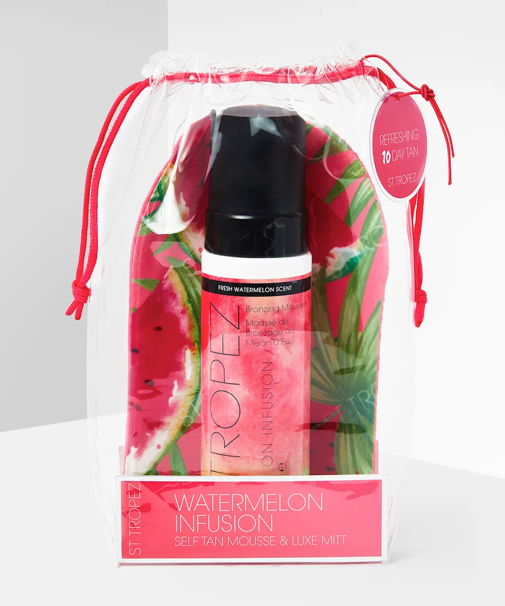 Infused with Vitamin E and moisturising watermelon extract, St.Tropez Watermelon Kit leaves the skin looking and feeling golden and radiant. The lightweight tanning mousse has a juicy watermelon scent and tailors to your skin tone for a natural-looking, long-lasting glow, while the limited-edition matching tan mitt ensures a flawless tan with just one application.