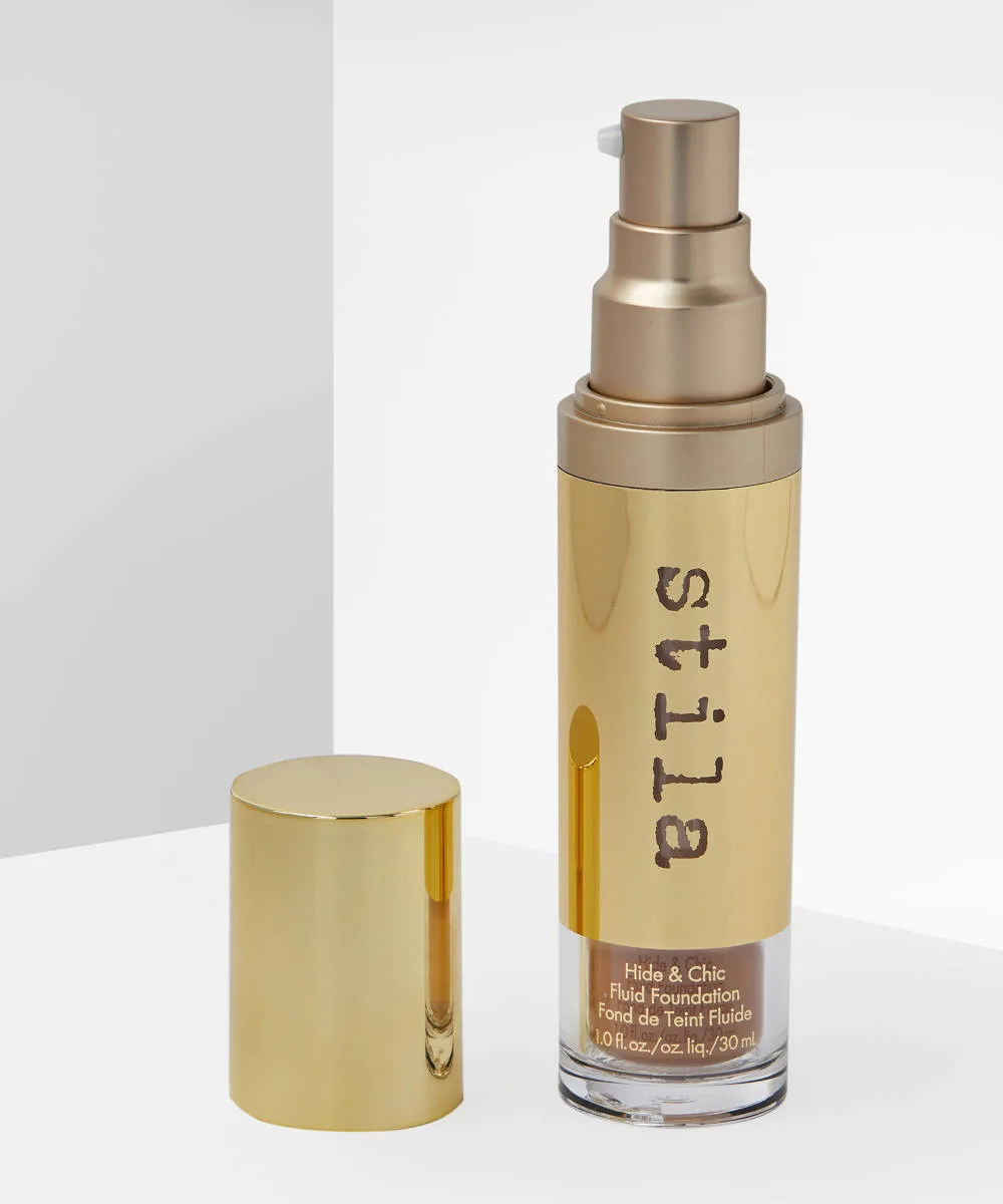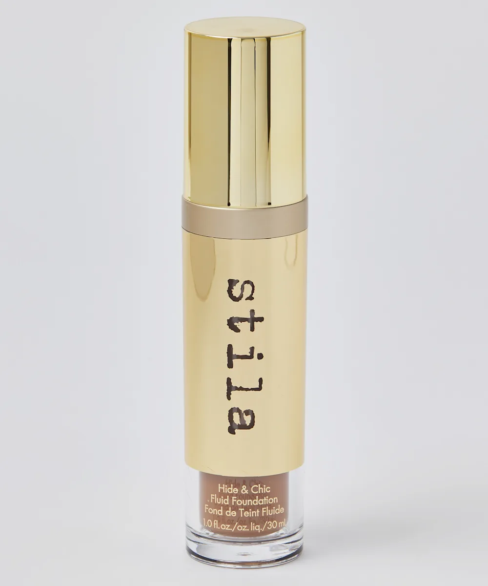 Put your best face forward with Stila’s Hide & Chic Fluid Foundation. The light liquid texture creates undetectable coverage while blurring pores and leaving a silky, breathable feel. Infused with skin-loving ingredients, the formula instantly plumps and hydrates skin for a healthy, even-toned complexion. Plus, it’s humidity-proof!