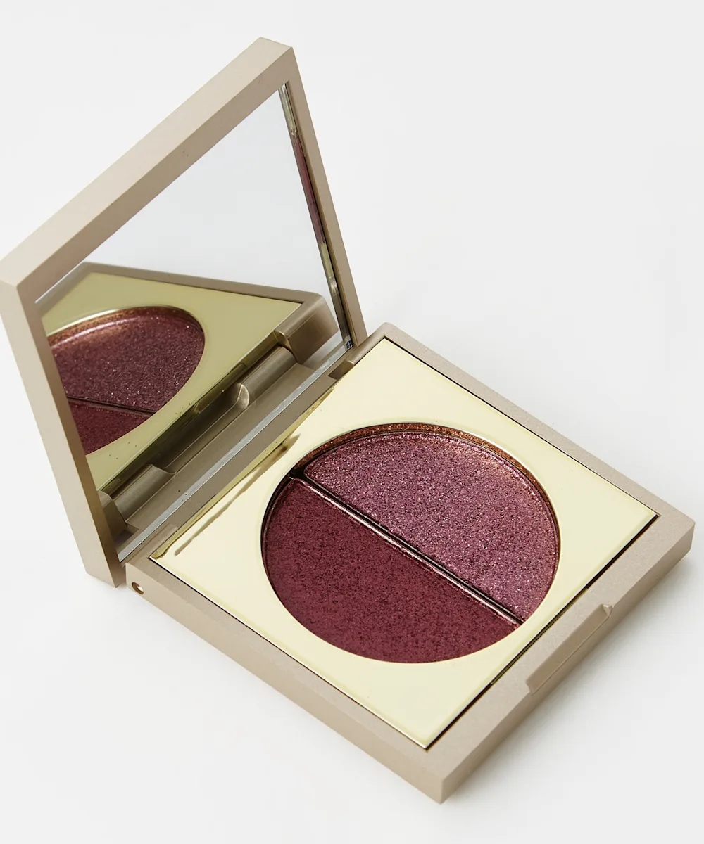 A metallic and glitter eyeshadow duo.