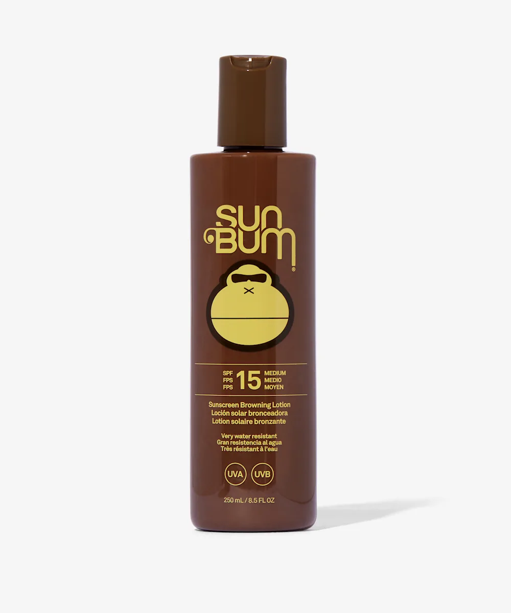 Get golden, glowy skin with the ultra-moisturizing SPF 15 Browning Lotion from Sun Bum. Made with organic coconut oil, kona coffee extract and aloe vera, this lotion is designed to optimise tanning results with broad spectrum protection during sun exposure. FYI: this lotion is brown in colour to help accelerate your tan but will stain your clothes.