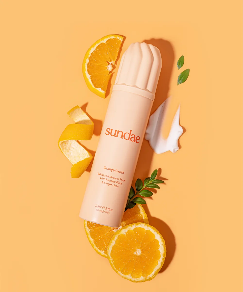Whip away dryness and skin dehydration with the Sundae Foaming Body Wash Orange Crush. Combining Kakadu plum, a rich source of vitamin C, with finger lime, a natural source of AHAs, this whipped body wash moisturises the skin, boosts brightness, and provides protection against premature ageing, whilst gently exfoliating. Fragranced with zesty and juicy bursts of orange, mandarin, and melon followed by the floral notes of jasmine, this luxurious body wash locks in a long-lasting fragrance for skin that is smooth, supple, and sensationally scented.