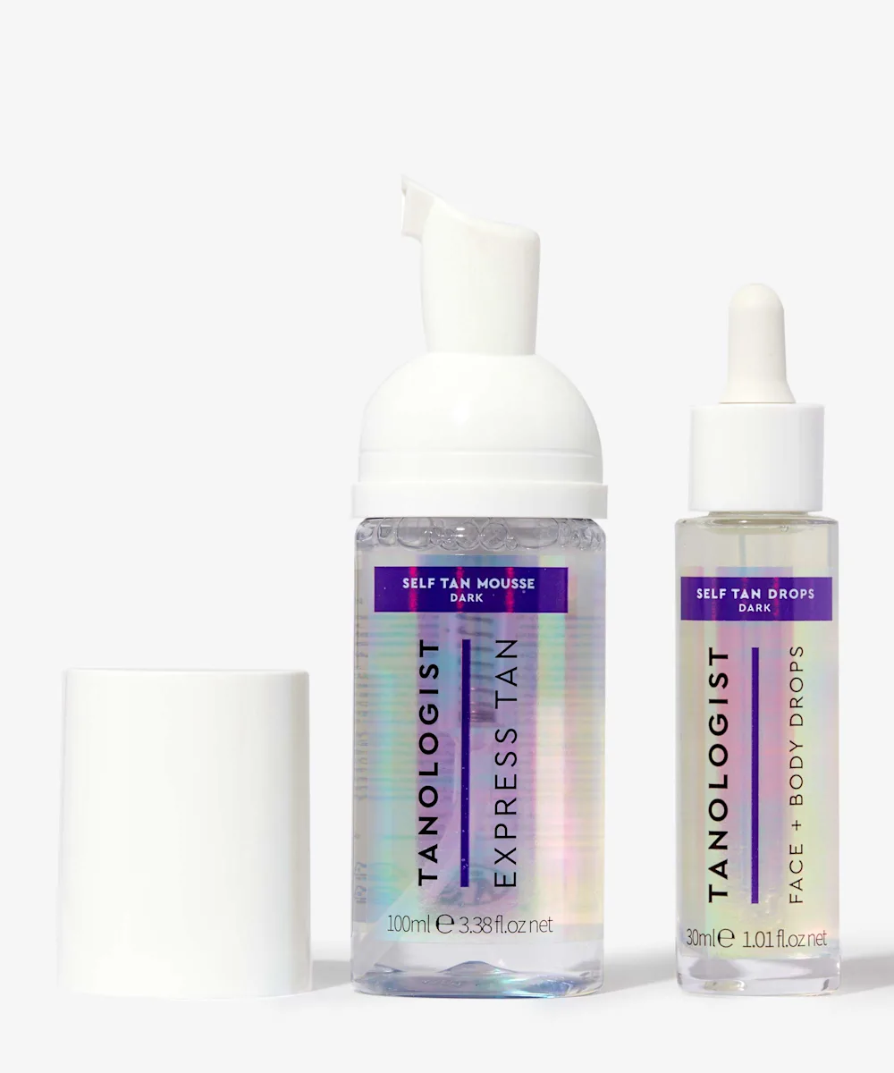 • Dark Self-Tan Drops 30ml – A bottle of dark self-tan drops that can be mixed with skincare, makeup, or body care for a hydrated and golden finish