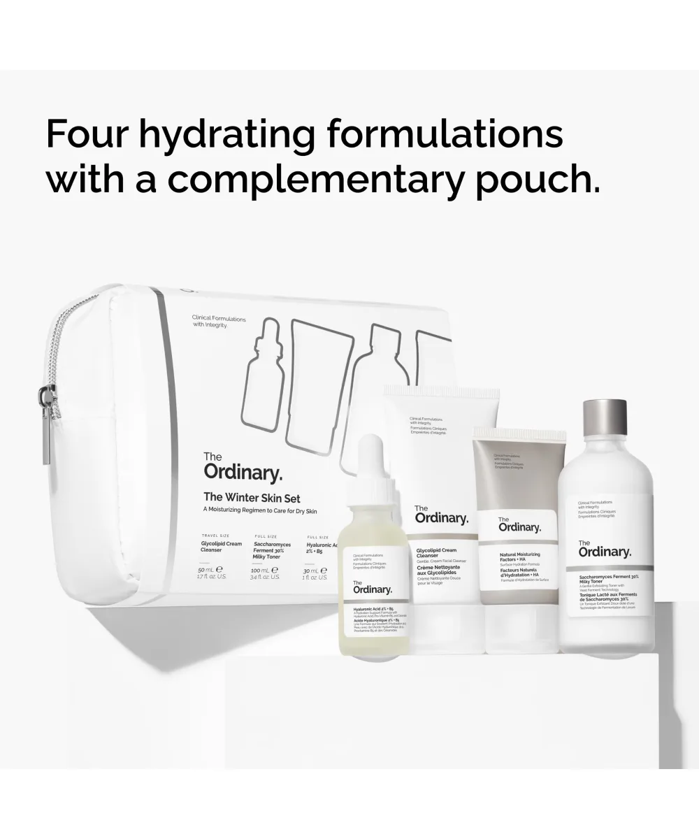 Keep dry, dull skin in check with The Ordinary Winter Skin Set. This limited-edition collection features hydrating, barrier-supporting formulations to target uneven texture and dryness caused by harsh winter weather. Housed in a complementary pouch, it provides everything you need for a full daily regimen that leaves skin smooth, plump, and nourished.