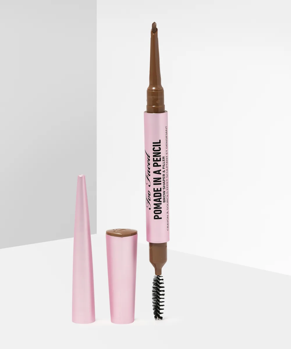 Love the finish of a pomade but the ease of a pencil? Then Too Face have got it covered. Introducing the Brow Pomade In A Pencil β a creamy pomade in an easy-to-use pencil format. The ultra-pigmented formula glides seamlessly onto brows to fill in any spare areas, add definition, and enhance your natural brows. The long-wasting, creamy wax formula sets brows in place for a waterproof finish that lasts for up to 36 hours β no fading and no smudging. Brush through the brows with the spoolie end for the perfect finish.