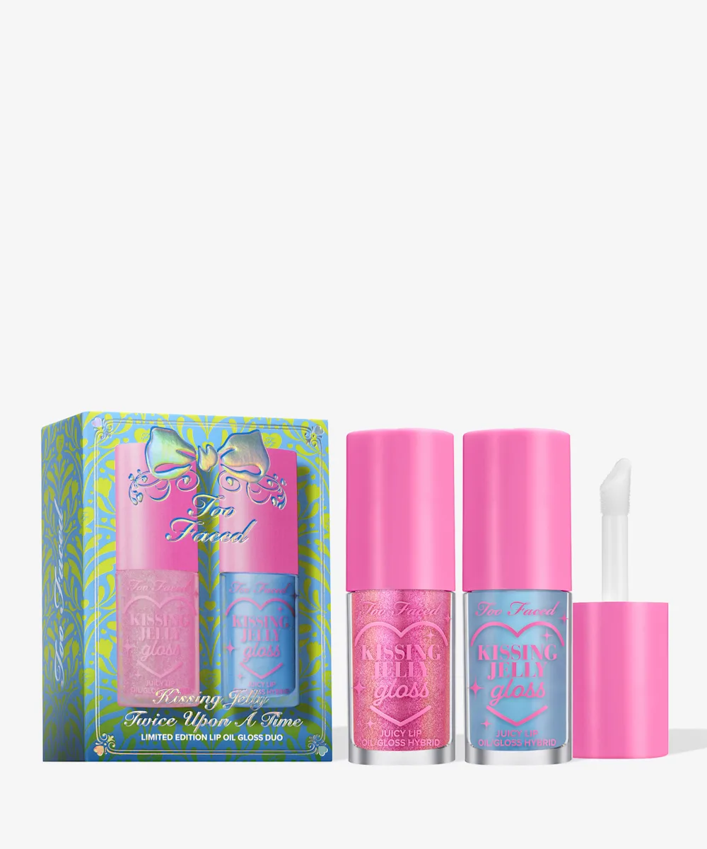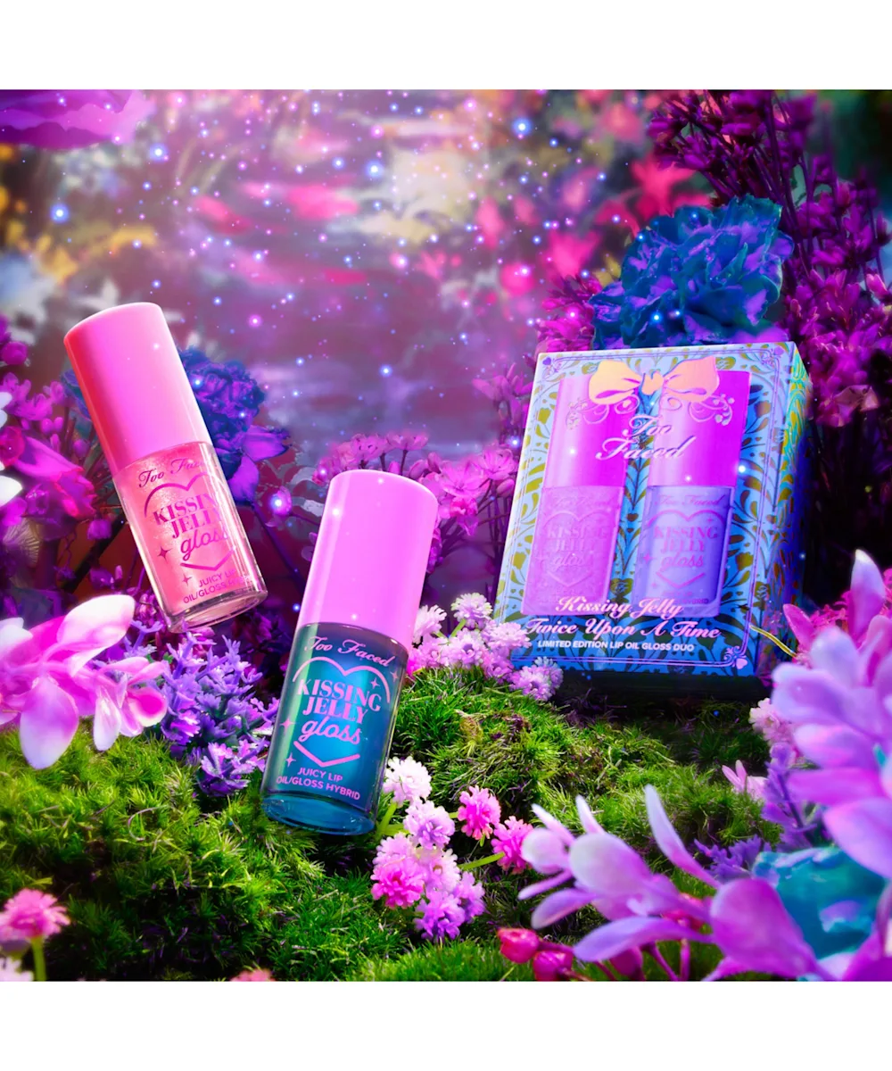 Keep your pout soft, shiny, and kissably sweet with the Too Faced Kissing Jelly Twice Upon A Time Set. This limited-edition duo includes two full-size shades of the juicy, nourishing lip oil/gloss hybrid that delivers sheer colour, glossy shine, and all-day hydration. Featuring the fan-favourite shade Bubblegum and the all-new, exclusive shade Blue Snow Cone, this giftable set makes it easy to keep one in your pocket and one in your purse so you’re never without irresistible lips.