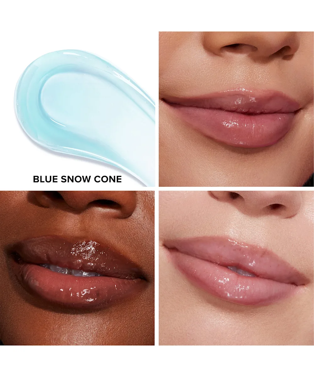 Kissing Jelly Lip Oil Gloss in Blue Snow Cone (4.5ml): An exclusive ice-blue gloss that softens lips with cushiony care while delivering a fresh, sheer wash of shine.