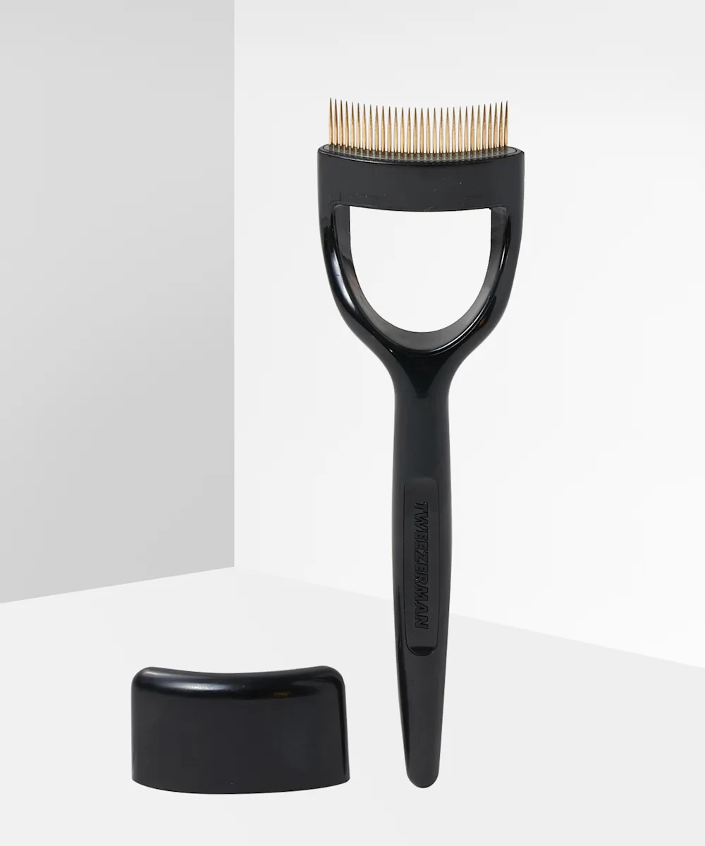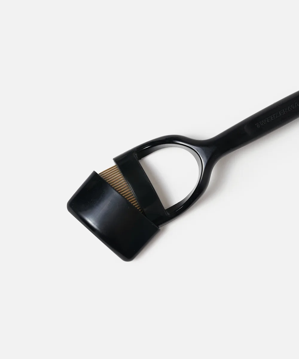 Designed to glide through the lashes to remove excess mascara, Tweezerman’s Curl 38° Lashcomb has been created specifically for almond shapes eyes. Perfect for leaving the lashes looking separated, define, and clump free, the comb has a custom design to precisely fit against the lash line for ease of use. The comb can also be used to blend natural and false eyelashes for a seamless appearance.