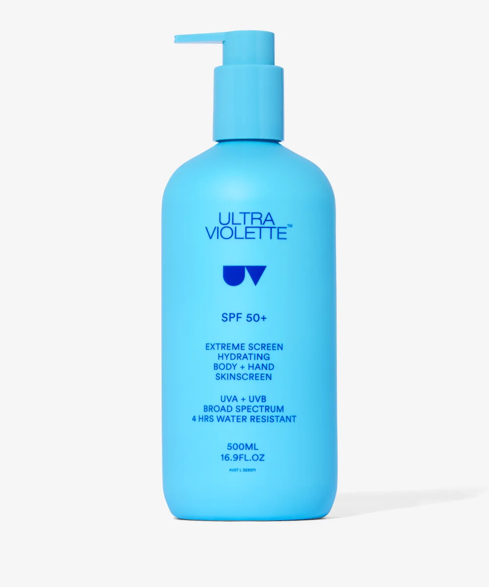 Meet your new fave hand and body SPF, Ultra Violette’s Bod Brigade SPF 50+. If you know and love the Extreme Screen SPF 50+ Hydrating Hand & Body SKINSCREEN™, then you’ll know and love this one more, as it’s a jumbo size of that formula. Sitting pretty in a huge 500ml pump pack, this SPF is a must have for days in the sun.