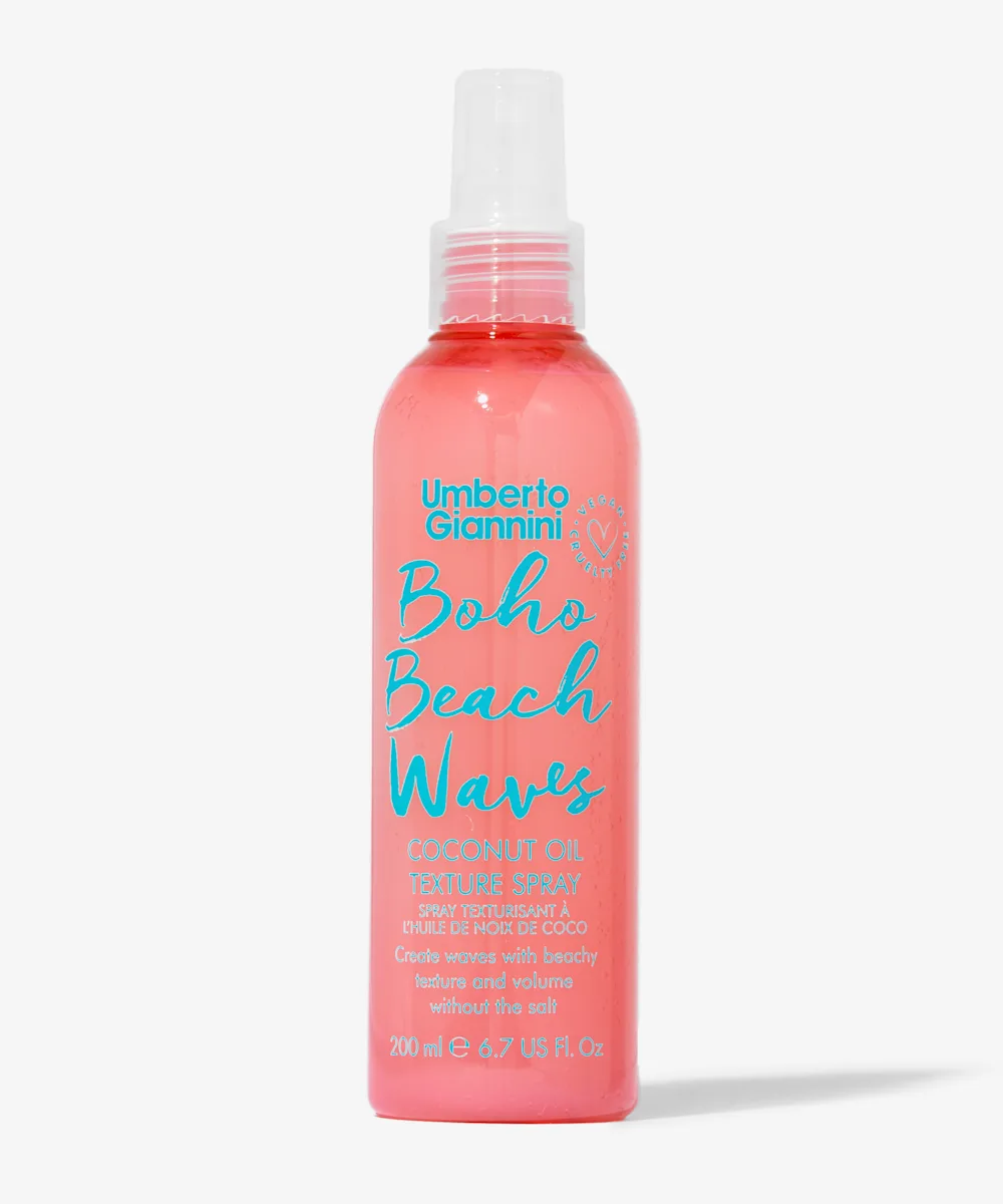 Ride the waves with the Umberto Giannini Beach Waves Texture Spray. This non-drying styling spray formulated with coconut oil gives you beachy volume, tousled looking, textured hair with a matte finish whilst protecting it from UV filters to prevent colour fade and leaving it with an uplifting bergamot and mandarin scent. Get the salt spray look without the salt!