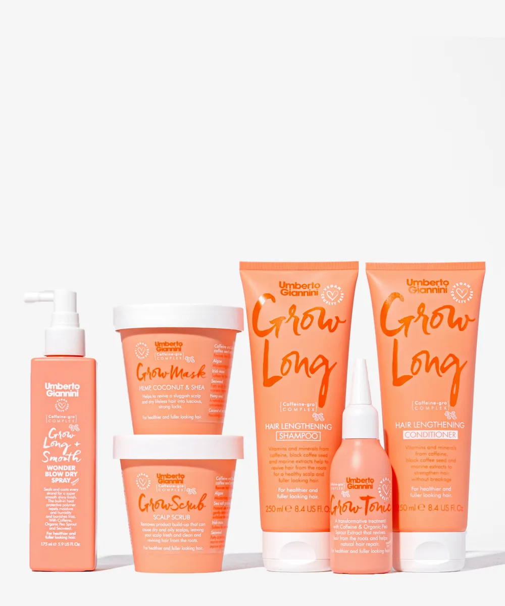 Grow longer, stronger hair faster using the Grow Long Kit from Umberto Giannini. With each product in this six-piece set containing the most powerful natural ingredients that help your scalp to grow new hair, slow down the loss of hair and hydrate from within, this set belongs in your next haul.