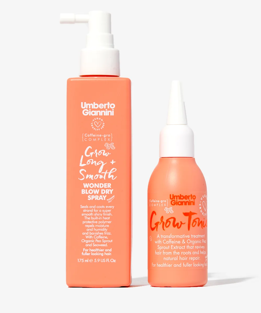 - Grow Long + Smooth Wonder Blow Dray Spray 175ml – A de-frizzing, heat protecting blow dry spray that helps to create a shield on the hair to accelerate hair growth, repel moisture and banish frizz