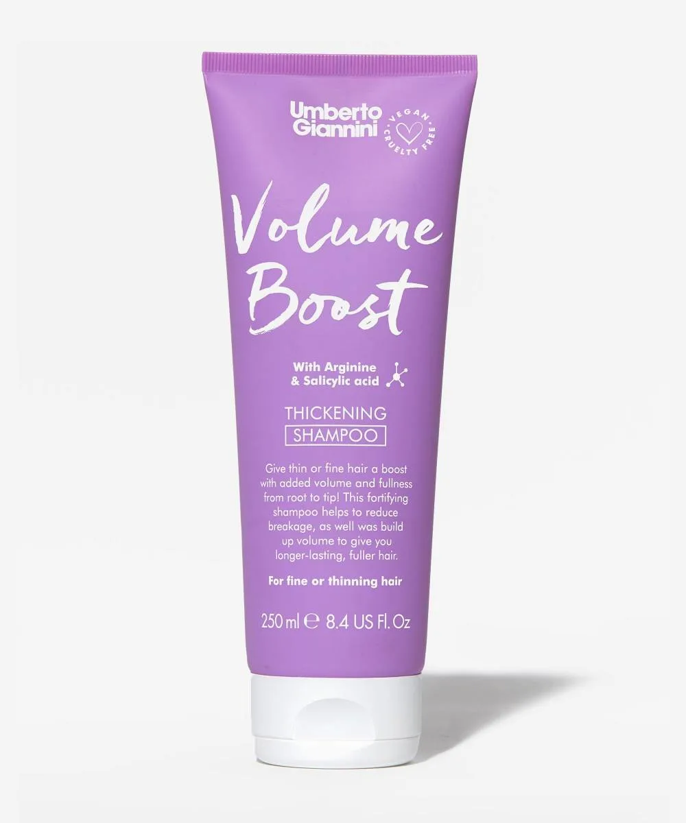 Give thin or fine hair a boost with Umberto Giannini’s Volume Boost Shampoo. The fortifying shampoo contains has been formulated with arginine and salicylic acid to exfoliate the scalp, while helping to improve thickness and volume. The thickening shampoo helps to strengthen and fortify the hair from root to tip while helping to reduce breakage and hair loss.