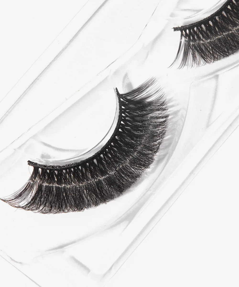 - Apply lash glue (not included) to the band and allow to go tacky before pressing onto the natural lash line.