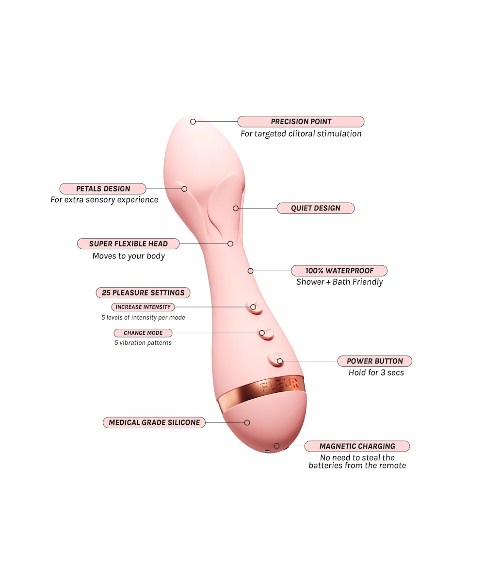 Level up your self-care game with Vush. The Rose 2 is a bullet vibrator that's hard not to fall in love with. The small, soft and flexible vibrator has precision points which bend and flex with your body, so you can personalise your pleasure. With five intensity levels and five vibration patterns to choose from, this quiet, 100% waterproof vibrator is designed for all bodies.