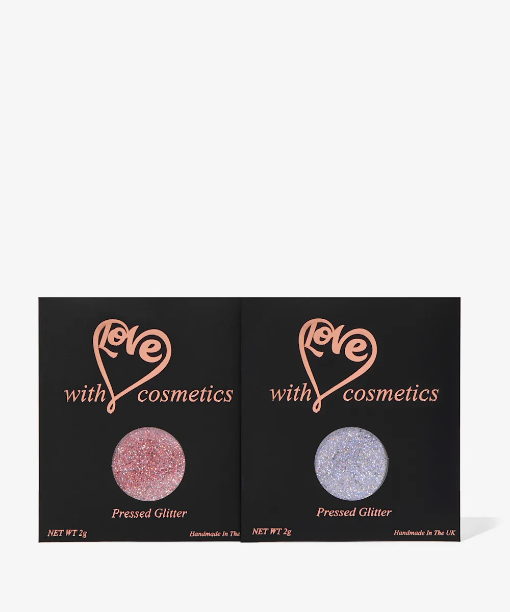 Light up your looks with With Love Cosmetics’ Pressed Glitter Duo. This duo contains two hassle-free pressed glitters designed to be applied without an adhesive for an effortless and easy application with or without a brush. With no fall-out properties and a selection of shades, this pressed glitter duo belongs in your next haul.
