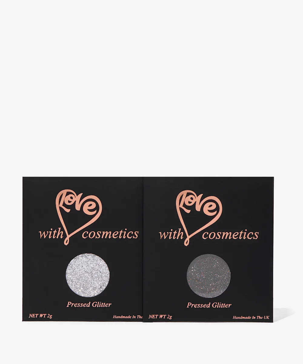 Light up your looks with With Love Cosmetics’ Pressed Glitter Duo. This duo contains two hassle-free pressed glitters designed to be applied without an adhesive for an effortless and easy application with or without a brush. With no fall-out properties and a selection of shades, this pressed glitter duo belongs in your next haul.