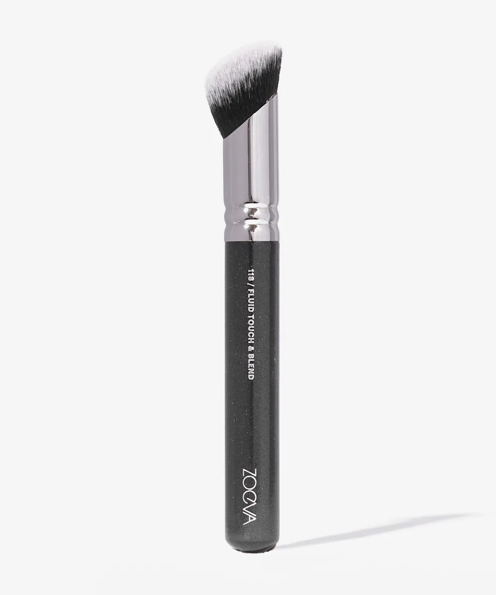 Meet some multitasking makeup tool magic, the ZOEVA 118 Fluid Touch & Blend. Ideal for liquid and cream highlighters, bronzers, and foundations, this multitasking brush is an essential everyone needs in their beauty collection, with its innovative, angled design it mimics the delicate and precise motion of a fingertip application, but with the ease and simplicity of a brush stroke. With densely packed, synthetic bristles that provide extra stability and maximum control.