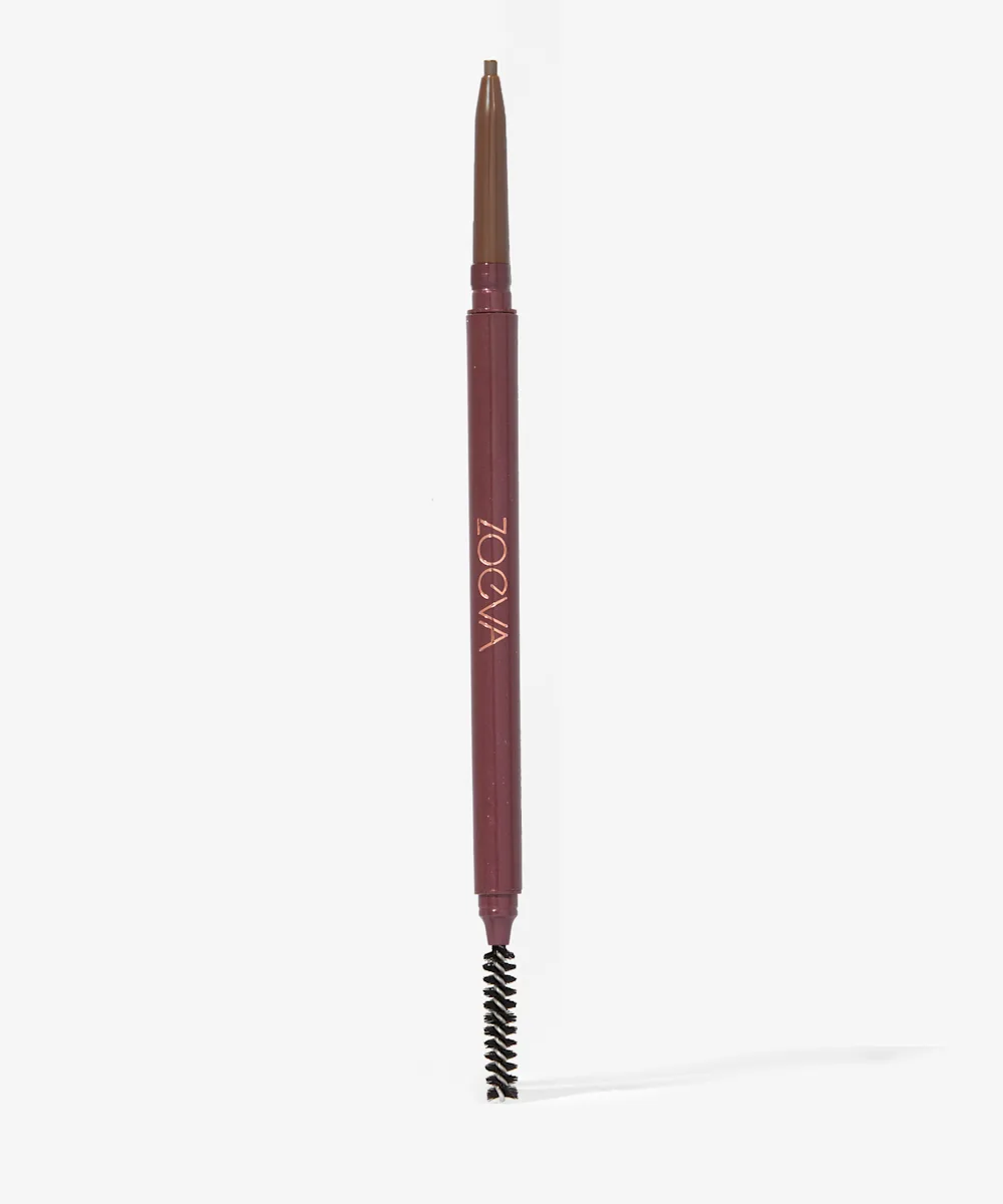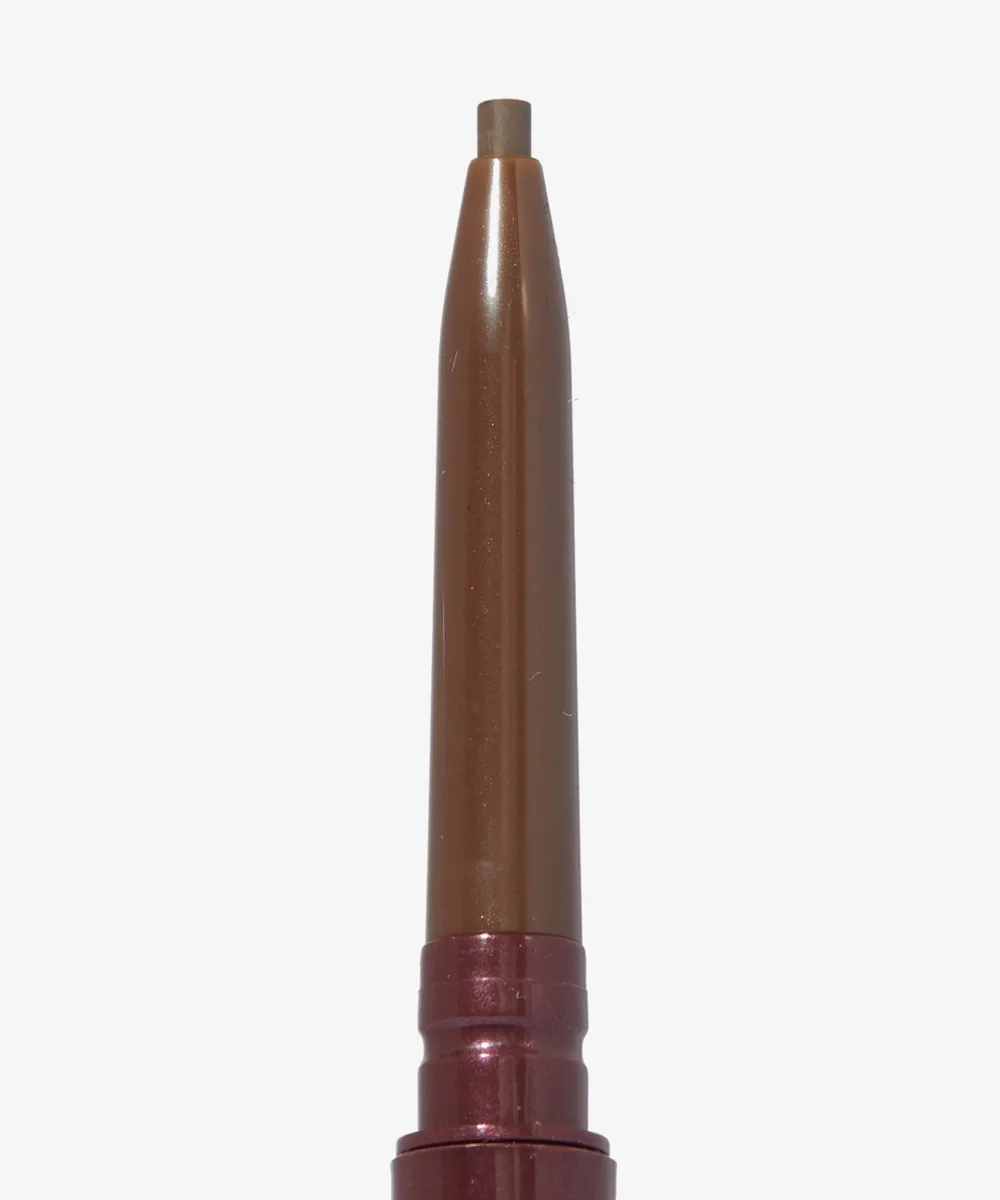 A dual ended, retractable eyebrow pencil with spoolie brush.